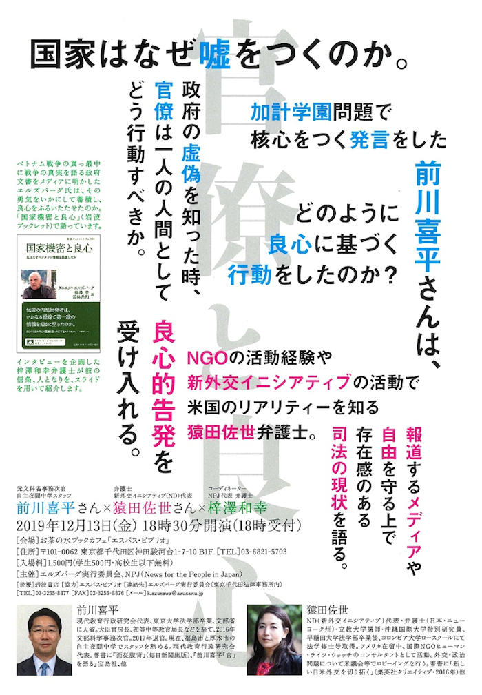宇都宮健児氏、内田雅敏氏、猿田佐世氏、伊藤和子氏など弁護士、満田夏花氏、